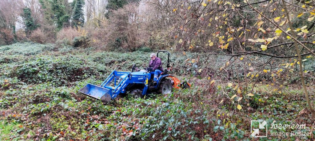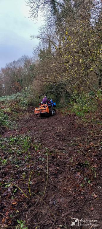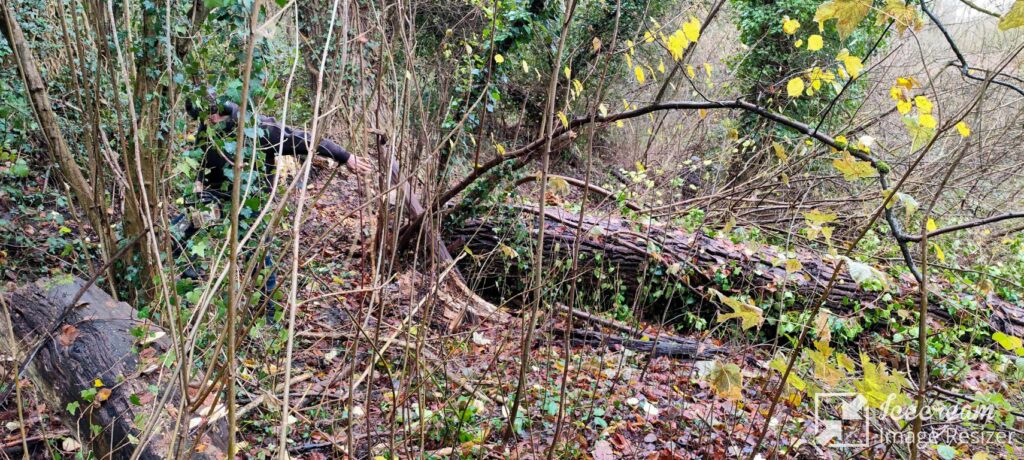 Une quatrième équipe s’est rendue dans le roncier pour pouvoir ré-ouvrir l’accès à l’ancienne servitude du fond de la réserve. La tâche n’est pas aisée au vu du diamètre de certains arbres tombés et à à tronçonner. Il reste du travail, mais une opération « scout » peut à présent être envisagée début 2026.